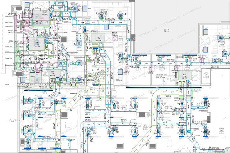 At Cocianni LLC., we specialize in creating precise 2D technical drawings for the design and installation of HVAC (Heating, Ventilation, and Air Conditioning) systems. These detailed plans are essential for ensuring the proper installation and operation of HVAC systems in residential, commercial, and industrial projects.